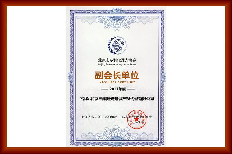 當(dāng)選“北京專利代理師協(xié)會(huì)副會(huì)長(zhǎng)單位”