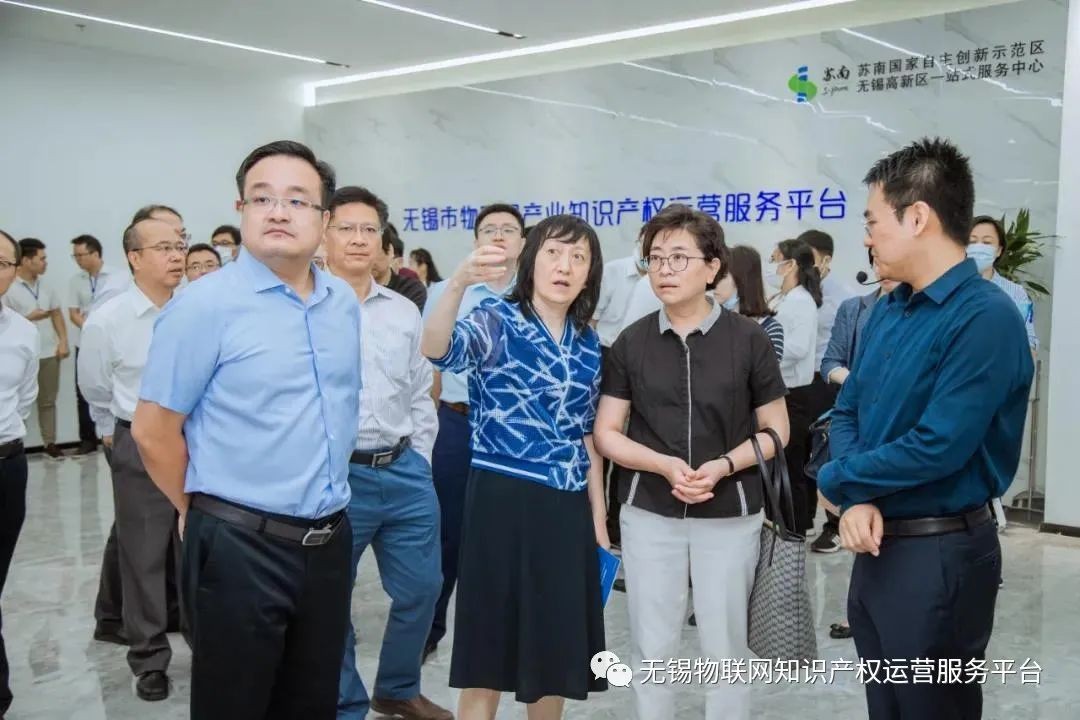 授牌前一天,國家知識(shí)產(chǎn)權(quán)局運(yùn)用促進(jìn)司司長雷筱云、江蘇省知識(shí)產(chǎn)權(quán)局局長支蘇平等一行領(lǐng)導(dǎo),前往無錫市物聯(lián)網(wǎng)產(chǎn)業(yè)知識(shí)產(chǎn)權(quán)運(yùn)營服務(wù)平臺(tái)考察調(diào)研,并召開了平臺(tái)建設(shè)工作匯報(bào)座談會(huì)。領(lǐng)導(dǎo)們肯定了平臺(tái)的建設(shè)成果及服務(wù)職能,并期望平臺(tái)能夠發(fā)揮紐帶作用,促進(jìn)物聯(lián)網(wǎng)知識(shí)產(chǎn)權(quán)的價(jià)值實(shí)現(xiàn),積極支持無錫建設(shè)國家知識(shí)產(chǎn)權(quán)運(yùn)營服務(wù)體系重點(diǎn)城市的工作。