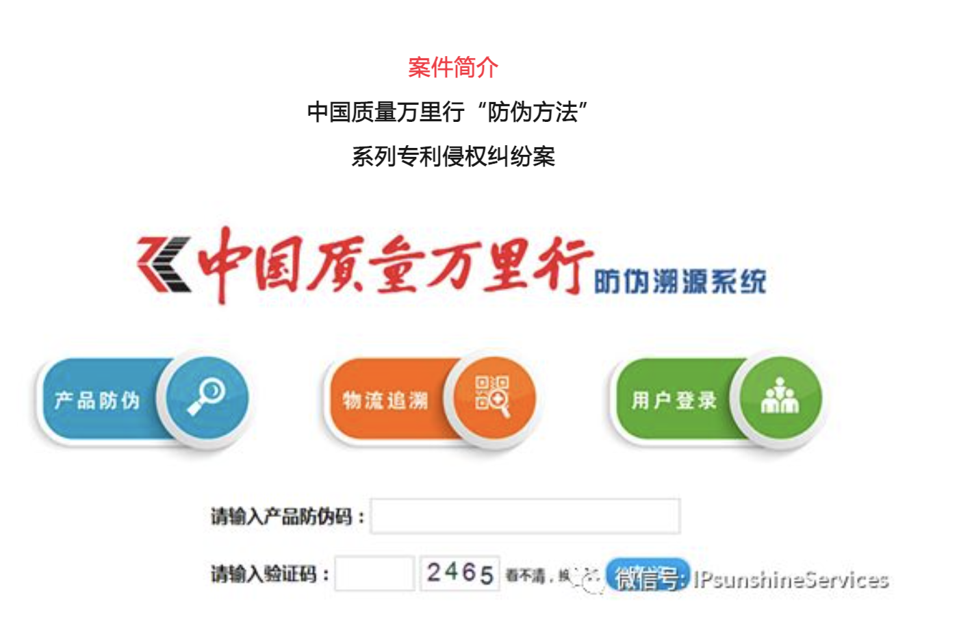 2016年下半年,北京金源茂豐新技術(shù)開發(fā)有限公司認為《中國質(zhì)量萬里行》雜志社和四川巨人好兒郎酒業(yè)有限公司涉嫌侵犯其“產(chǎn)品質(zhì)量追溯防偽系統(tǒng)及追溯防偽方法”等三件專利權(quán),委托三聚陽光向北京市知識產(chǎn)權(quán)局提出專利侵權(quán)糾紛處理請求。