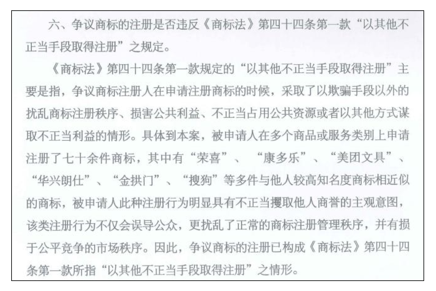 三聚陽光商標代理團隊經(jīng)過前期縝密的市場調(diào)查分析,采用多證據(jù)多訴求的組合策略,向商標局提交了無效宣告理由及主要證據(jù)。在審理過程中,商標局對我方提出的‘爭議商標違反《商標法》第四十四條第一款“以其他不正當手段取得注冊”的規(guī)定’予以支持,認定被申請人在多個商品或服務(wù)類別上申請注冊七十余件與他人較高知名度商標相近似的商標的行為,有明顯攫取他人商譽的主觀意圖,會誤導公眾,并且擾亂了正常的商標注冊管理秩序,有損于公平競爭的市場競爭秩序,最終裁定爭議商標無效。 與上述第20966570號“派多格”商標無效案類似,三聚陽光同時成功代理了第18046943號“派多格PETDOG及圖”的商標無效宣告案、第21584900號“派多格”商標無效宣告案。 三聚陽光商標服務(wù)團隊由擁有豐富商標審判和審查經(jīng)驗的前法官、前商標局審查員以及資深商標代理人和商標律師組成,可為客戶提供國內(nèi)外商標注冊、布局、復(fù)審、異議、無效、維權(quán)訴訟等專業(yè)服務(wù)。曾服務(wù)過的知名客戶有紅螺食品、派多格、作業(yè)盒子、大連萬達、淘車網(wǎng)、中國煙草、利勃海爾等。三聚陽光商標代理團隊始終嚴格管控服務(wù)質(zhì)量,并通過全面、到位的商標檢索等核心服務(wù),為企業(yè)合理規(guī)避市場競爭風險、保護核心品牌資產(chǎn)、獲取競爭優(yōu)勢提供助力。