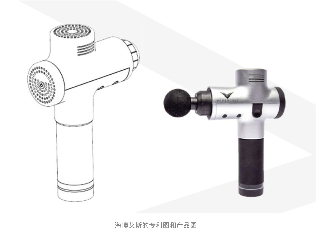 視頻中只有幾秒的畫面,并且只能看到筋膜槍的一個(gè)側(cè)面,握把等處還被使用者的手部遮擋。對(duì)此補(bǔ)強(qiáng)證據(jù)為:新浪NBA官方微博和專利權(quán)人的微博都宣傳了“詹姆斯同款Hypervolt筋膜槍”,并配有錄像所示場景的gif圖以及按摩槍的立體圖。盡管視頻中受拍攝角度限制,未顯示按摩槍的全部設(shè)計(jì)細(xì)節(jié),但是在“新浪NBA官方微博”和“Hyperice官方微博”均明確記載比賽現(xiàn)場和微博所示按摩槍為同款的情況下,微博中所示按摩槍立體圖中的設(shè)計(jì)特征可以用于表明比賽現(xiàn)場公開的按摩槍的具體設(shè)計(jì)特征。