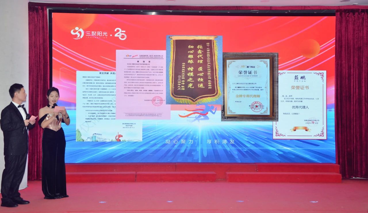 1月18日,三聚陽光知識產(chǎn)權(quán)集團在京鐵大酒店隆重舉辦2025年新春年會,集團員工歡聚一堂,共慶過去一年的累累碩果,展望未來發(fā)展的嶄新篇章。