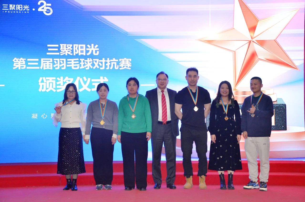 年會現(xiàn)場,公司還對剛結(jié)束的羽毛球比賽獲勝選手進行了頒獎,他們?nèi)σ愿?,在賽場上為冠軍榮耀奮勇拼搏精神,展現(xiàn)了三聚陽光人積極進取的風(fēng)貌。每一份榮譽都凝聚著個人的努力和團隊的力量,激勵著全體員工再創(chuàng)佳績。