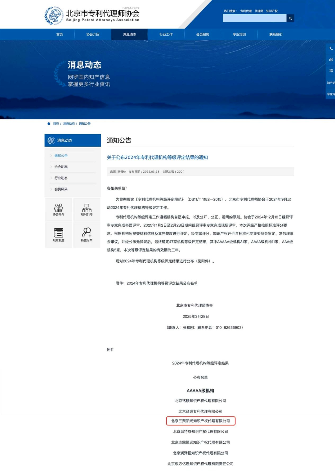 AAAAA級(jí)是北京市專利代理師協(xié)會(huì)對(duì)行業(yè)機(jī)構(gòu)進(jìn)行的最高級(jí)別等級(jí)評(píng)定,全面衡量機(jī)構(gòu)在專業(yè)水平、服務(wù)能力、隊(duì)伍建設(shè)、運(yùn)營管理及社會(huì)責(zé)任等維度的綜合實(shí)力。此次蟬聯(lián)最高評(píng)級(jí),不僅是對(duì)三聚陽光專業(yè)團(tuán)隊(duì)辛勤付出的肯定,也是對(duì)公司持續(xù)創(chuàng)新和卓越服務(wù)的認(rèn)可。
